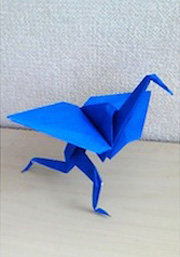 折り鶴??仕事先で「鶴折れますか?」「折れるよ思うよ」う〜ん? どうするんだっけ… ガキンチョの頃は確かに折れたのに…インターネットで折り方を調べていたら変な鶴を発見!! もう興味はこっちへ、「この足、ど〜なってるの??」 一部では結構この変態鶴が流行ってたんだって… 早速挑戦です。 |