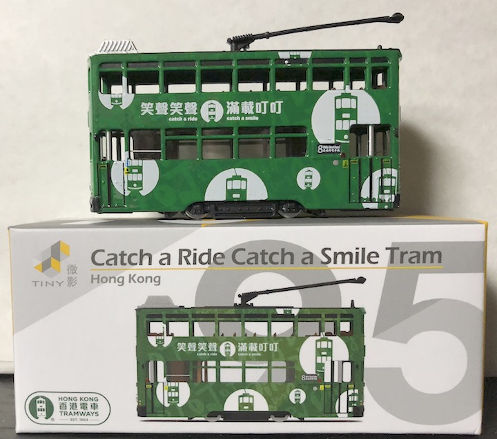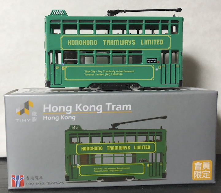 Hong Kong Tram香港トラムの新作3台を入手しました。ちょうど1年ぶりでしょうか?1台目は「 Catch a Ride Catch a Smile Tram 」 う〜ん、これもよく分りませんが 「香港路面電車 Ding Ding Smile」とアマゾンでは紹介されてました。 2台目は「 Kawloon Motor Bus Livery 」 トラムにバスのラッピングをしたモデル。 3台目は「 HONGKONG TRAMWAYS LIMITED 」 これがよく解りませんがパッケージもいつもの Tinyとは違い会員限定とあります。しかし2台とも素敵なモデルで私のコレクションも少しずつ増えて来てますね。 |
